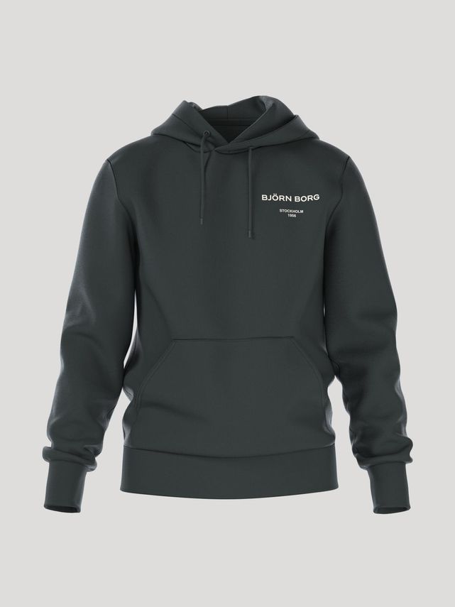 Denne hoodie fra Bjrn Borg kombinerer komfort og stil med et afslappet fit i en blød blanding af bomuld og genanvendt polyester. Det enkle design og de ribbede kanter giver et tidløst og behageligt udtryk, perfekt til både hverdagsbrug og afslappede stun