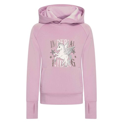 Lækker blød hoodie med hest motiv. Den perfekte gave til ponypigenHoodien er design med hætte foret med åndbar mesh, lang raglan ærmer med rib manchetter og flot heste print. Med en praktisk frontlomme og ribkant er denne hættetrøje perfekt til, at d
