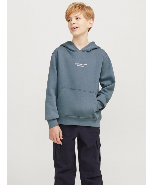 Få en afslappet og stilfuld stil med Jack Jones Junior hoodiei farven Stormyblå. Denne komfortable hoodie er perfekt til enhver anledningog tilføjer et moderne touch til drengens look. – Produkttype: Hættetrøje – Ærmer: Lange ærmer – Lommer: Kængu