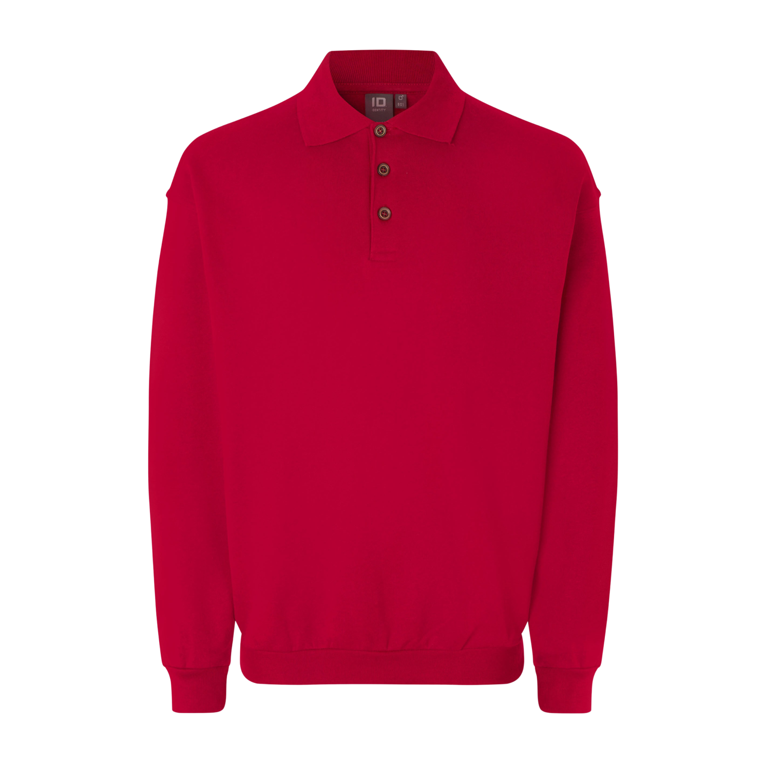 ID herrre polosweatshirt med polokrave, stolpelukning og knapper ved kraven. Trøjen har rib ved ærmer og i bunden, og har en børstet inderside.