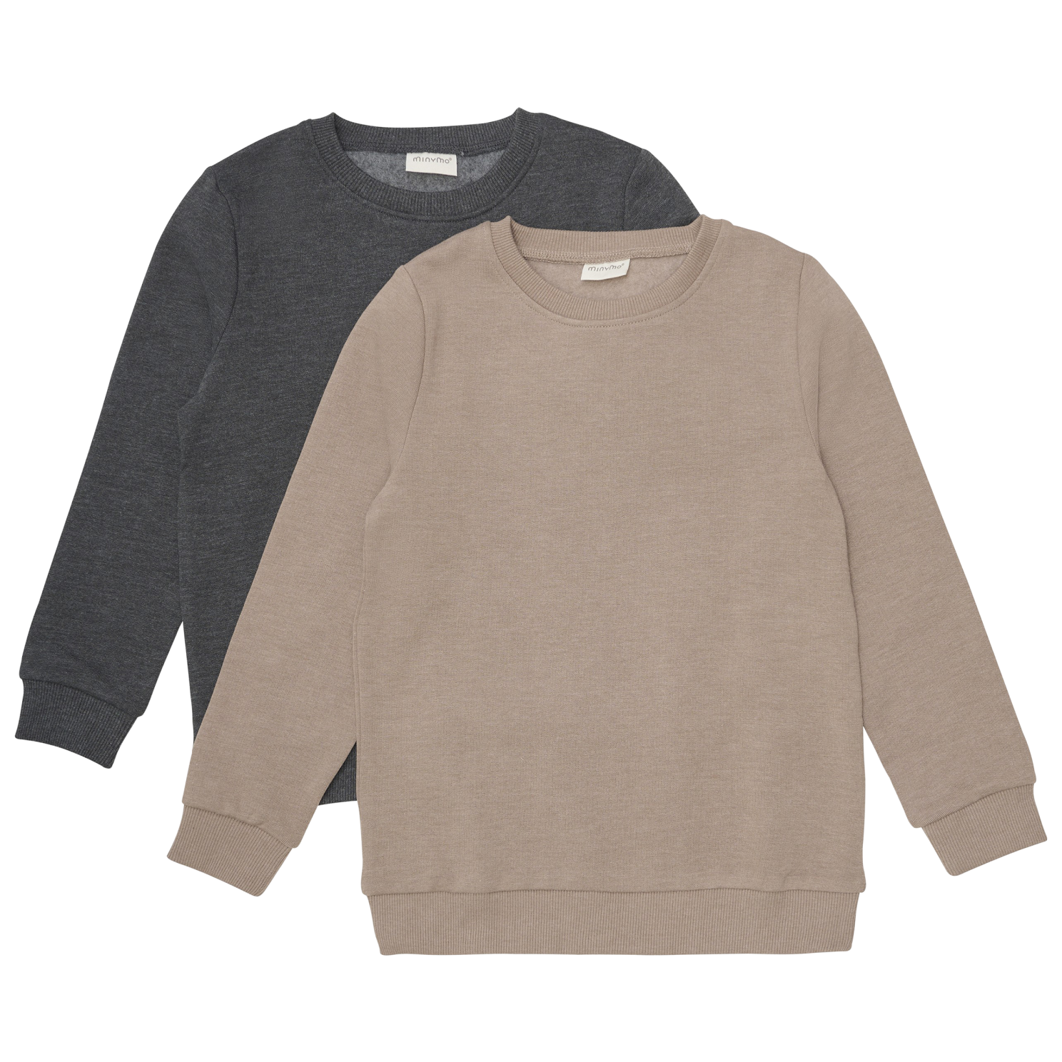 Minymo 2-pak bestående af to sweatshirts lavet af french terry. Trøjerne har rib i halsudskæring, ærmer og i taljen.