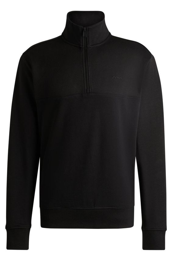 En signatur sweatshirt med lynlås fra BOSS. Denne sweatshirt med afslappet pasform er lavet i ren bomuldsfleece med en logodetalje på brystet.